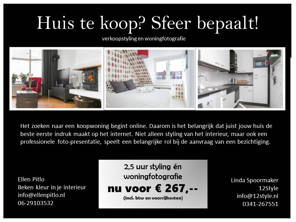 Door de aantrekkende woningmarkt krijgt iedereen het drukker. Ook makelaars op de Veluwe. Als ervaren verkoopstyliste ben ik daarvan goed op de hoogte. Om makelaars én huizenverkopers terzijde te staan, is een handige dienst ontwikkeld. Verkoopstyling en woningfotografie in één, snel en voordelig voor u geregeld; de ideale service opgesteld door een combinatie van kennis van meerdere experts. Desgewenst verzorgen wij ook de plattegronden van de woning en leveren we de verkooptekst aan. Kunt u direct verder met de verkoop. Of dát handig is!